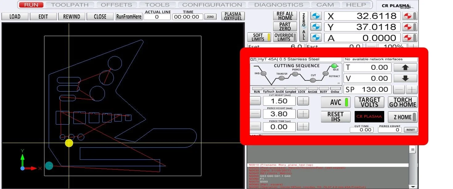 Styrmjukvaran ger operatören live-feedback om maskinens position i förhållande till plåten som blir lagd på bordet. Oavsett om du kapslar stora uppsättningar av delar eller för att göra små delar från avskärningar är det live-gränssnitt ovärderligt för att säkerställa att du alltid har tillräckligt med arbetsstycke under brännaren.